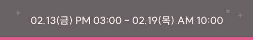 • À̺¥Æ® ±â°£ : 2026/02/13 ¿ÀÈÄ 3½Ã ~ 2026/02/19 ¿ÀÀü 10½Ã